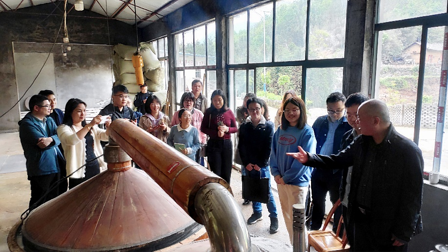 赵扬笛院友详细分享了自己在基层开展工作的情况与体会,并介绍了村里酿酒产业的发展。由于村里会用传统方法酿酒的村民不少,庙滩当地人也非常喜爱石库村的酒,且当地水质、土质以及气候与四川南部白酒优质产区非常接近,发展白酒产业具有极好的条件,当地便着力将酿酒作为产业予以发展,目前已经取得了良好的效益。据悉,酒厂在2016年投产,每年能生产白酒两万斤,创产值100多万元,聘用的工人大多是村里的建档立卡贫困户。去年,酒厂为拓展销路,请专业公司设计了商标和包装盒,打造“石库新村酒”品牌。