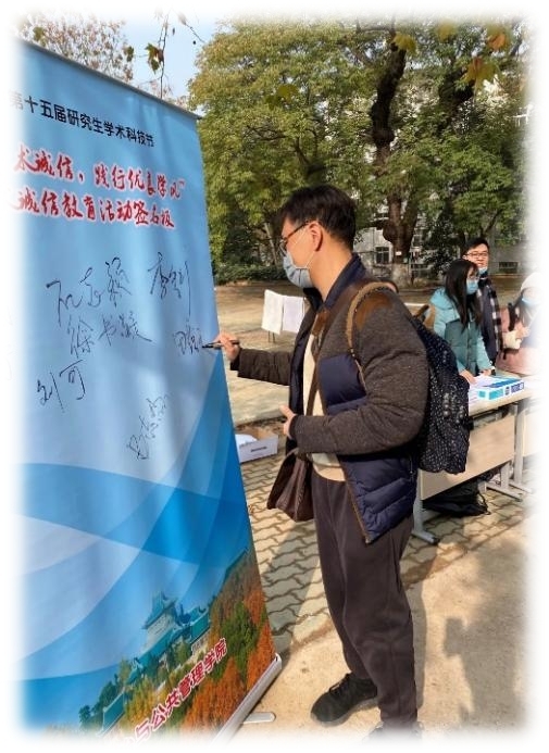 (十七)公司研究生会举办学术科技节“坚守学术诚信,践行优良学风”学术诚信教育系列活动 2020年11月30日至12月4日,公司研究生会开展“坚守学术诚信,践行优良学风”学术诚信教育系列活动,旨在通过多形式全方位的学术诚信活动,如校园采访活动、学术诚信读本发放、学术诚信签名活动、简评大赛、知识问答等环节,为研究生群体搭建学术诚信的交流平台,增强研究生对学术诚信的重视与关注,力争使学术诚信精神融入研究生生活的方方面面。