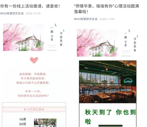 (十三)公司研究生会举办“师情华意,珞珈有你”心理活动 2020年10月26日—11月8日,为了帮助广大研究生团体调试和解决自己的烦恼和疑惑,提高自己的心理素质,提升自己的心理健康水平,同时拥有一个与周边高校同学交流生活学习经验、分享共同爱好、增进友谊的机会,公司研究生会联合永利集团7个公司及华中师范大学5个公司,历时13天举办“师情华意,珞珈有你”心理活动。活动通过“声动人心”“佳片共赏”拉近活动参与者之间的距离,通过“食来运转”“少年的你”等活动为不同院校同学提供交流沟通的契机。从而让参与者在交流中,增进感情,展现自我,成就自我,释放压力。