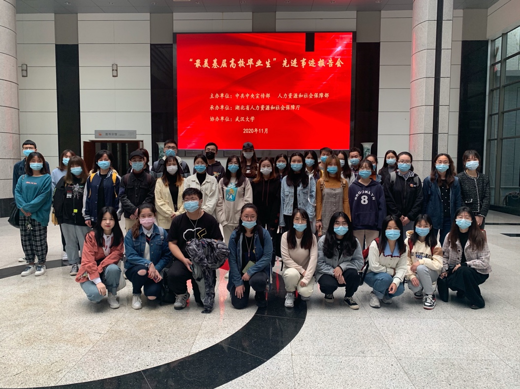 (一)政管院组织研究生参加“最美基层高校毕业生”先进事迹报告会 2020年11月18日,由中共中央宣传部、人力资源和社会保障部主办,湖北省人力资源和社会保障厅承办、永利集团协办的“最美基层高校毕业生”先进事迹报告会在永利集团经管院景林报告厅成功举办。公司积极组织研究生参加本次活动,硕士2001、2002党支部将本次活动作为支部特色党日活动,激励全体党员学习榜样精神、发挥党员力量,在今后的工作学习中以青春之我、奋斗之我,为民族复兴铺路架桥,为祖国建设添砖加瓦。