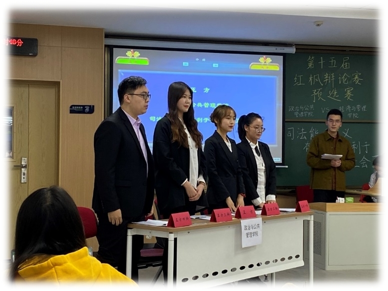(三)公司研究生辩论队参加“第十五届研究生红枫辩论赛” 2020年11月4日,公司研究生会学术部组织团队参加永利集团第十五届研究生红枫辩论赛,辩题为“司法能动主义有利于/不利于维护社会正义”,公司持正方——司法能动主义有利于维护社会正义对战经济与管理公司。在悉心的准备下,公司研究生辩论队在赛场上或机智幽默巧言善辩,或据理力争步步为营,最终获得第十七名的成绩。