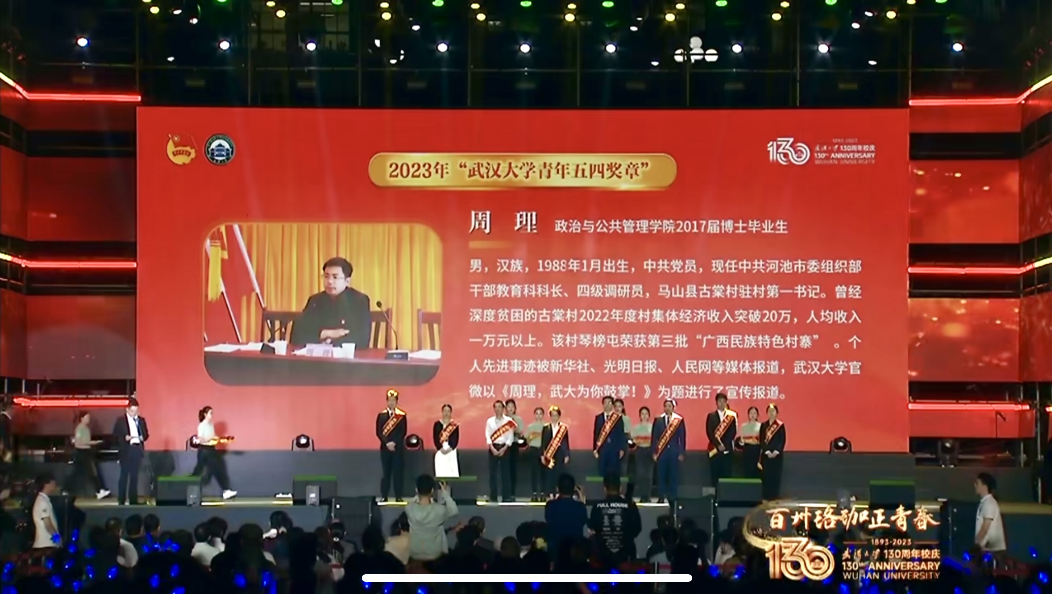 周理,1988年1月出生,中共党员,yl6809永利集团2017届博士毕业生,现任中共河池市委组织部干部教育科科长、四级调研员,马山县古棠村原第一书记。疫情期间带领上万名青年志愿者参加疫情防控志愿服务,义务公共区域消毒超200万平方米。2021年主动申请到曾经深度贫困的古棠村担任驻村第一书记,打造马山县网红四季花海。为古棠小学修建第一个足球场,成立第一支瑶乡女子足球队,招募支教老师驻村陪伴指导,打造古棠村琴榜山牌系列特色产品,还成功进驻832销售平台,助农增加收入,古棠村2022年度集体经济收入突破20万,人均收入一万以上。古棠村琴榜屯荣获第三批“广西民族特色村寨”,古棠村党总支部从软弱涣散农村基层党组织到2022年评为“四星级党组织”。事迹被新华社、光明日报、人民网等媒体报道,永利集团官微以《周理,武大为你鼓掌!》为题进行了宣传。