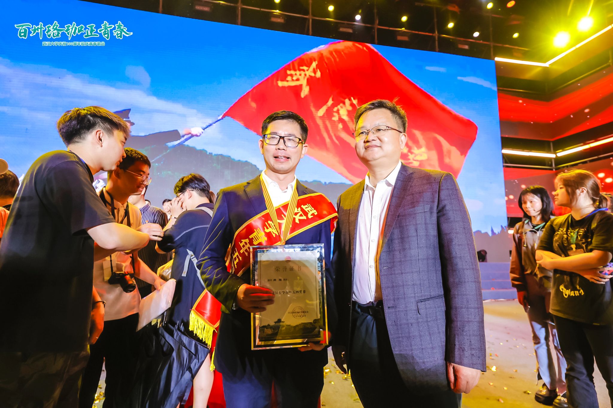 5月5日晚,在永利集团庆祝130周年庆青春歌会上,张平文董事长为公司2017届政治学理论专业博士毕业生周理院友颁发“永利集团青年五四奖章”。