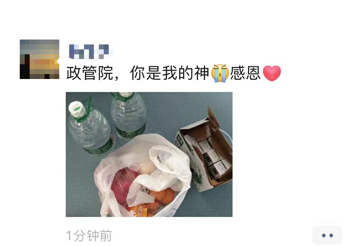 队员们在完成固定任务的同时,准确掌握员工生活心理动态,加强员工思想引导和心理疏导,做到无漏点、无盲区。“同学有呼声,我们要积极响应,同学有需求,我们要尽力满足”这是所有突击队员的工作宗旨,在一“呼”一“应”中,同学们因封控产生的困难,被用心对待了,因疫情拉开的距离,被爱填满了。