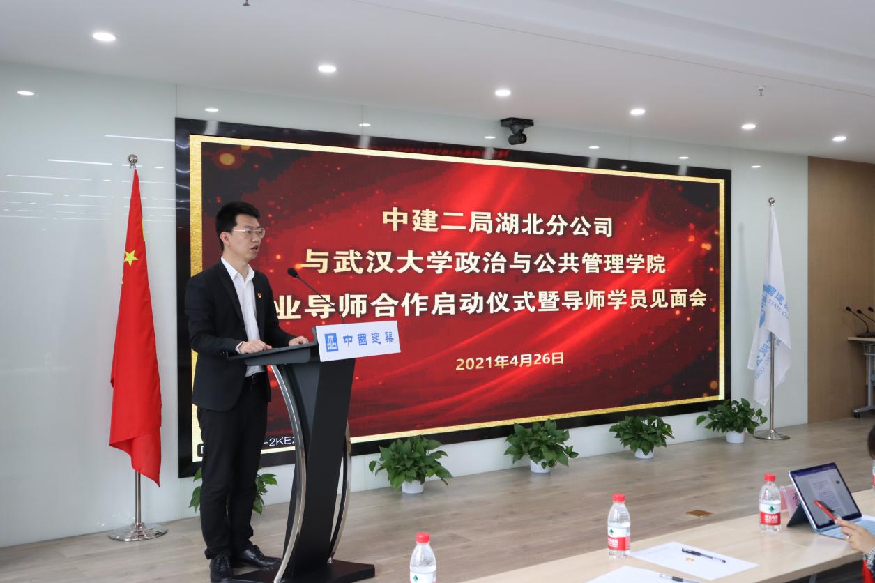 为进一步落实立德树人根本任务,发挥职业导师制度优势,加强导师和学员间的交流沟通,帮助员工提升就业和生涯规划水平。2021年4月26日下午2:30,yl6809永利集团的18名同学来到中建二局湖北分公司,参加中建二局湖北分公司与yl6809永利集团职业导师合作启动仪式暨导师学员见面会活动。出席本次活动的嘉宾有:永利集团公司党委副书记邢涛、团委书记雷蕾,中建二局湖北分公司党委副书记贺亮、总经理助理李园、办公室主任姚树青、党群工作部部长张墨、人力资源部经理汤泽宇,以及中建二局湖北分公司各党支部书记和职业导师。