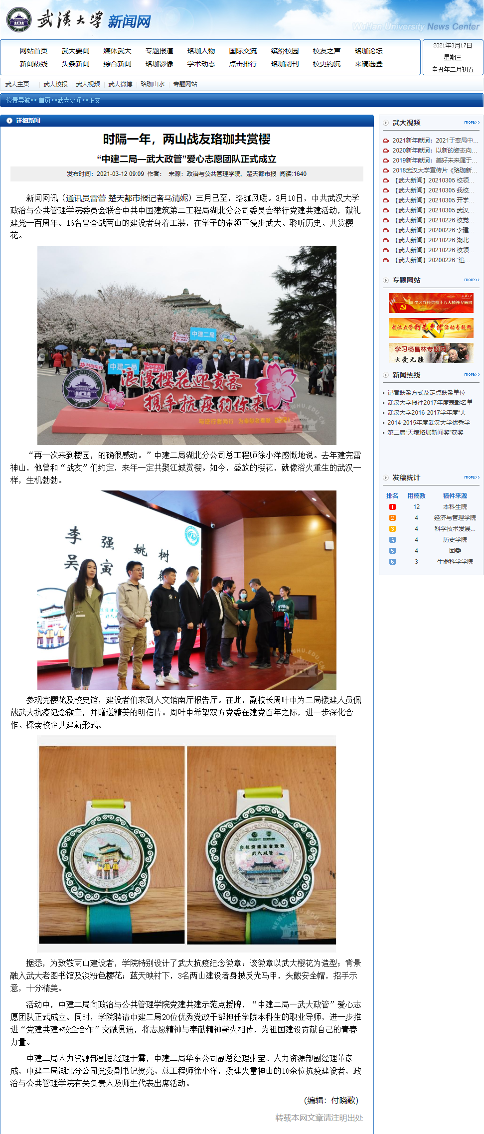 长江日报:“武大樱花,我们来了” “两山”建设者共赴一年之约