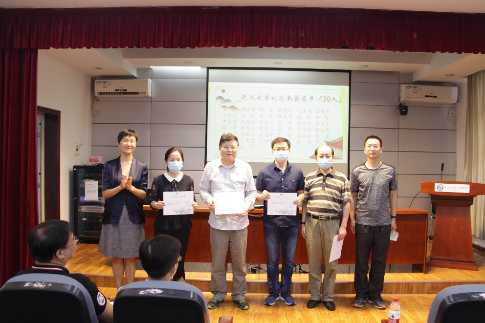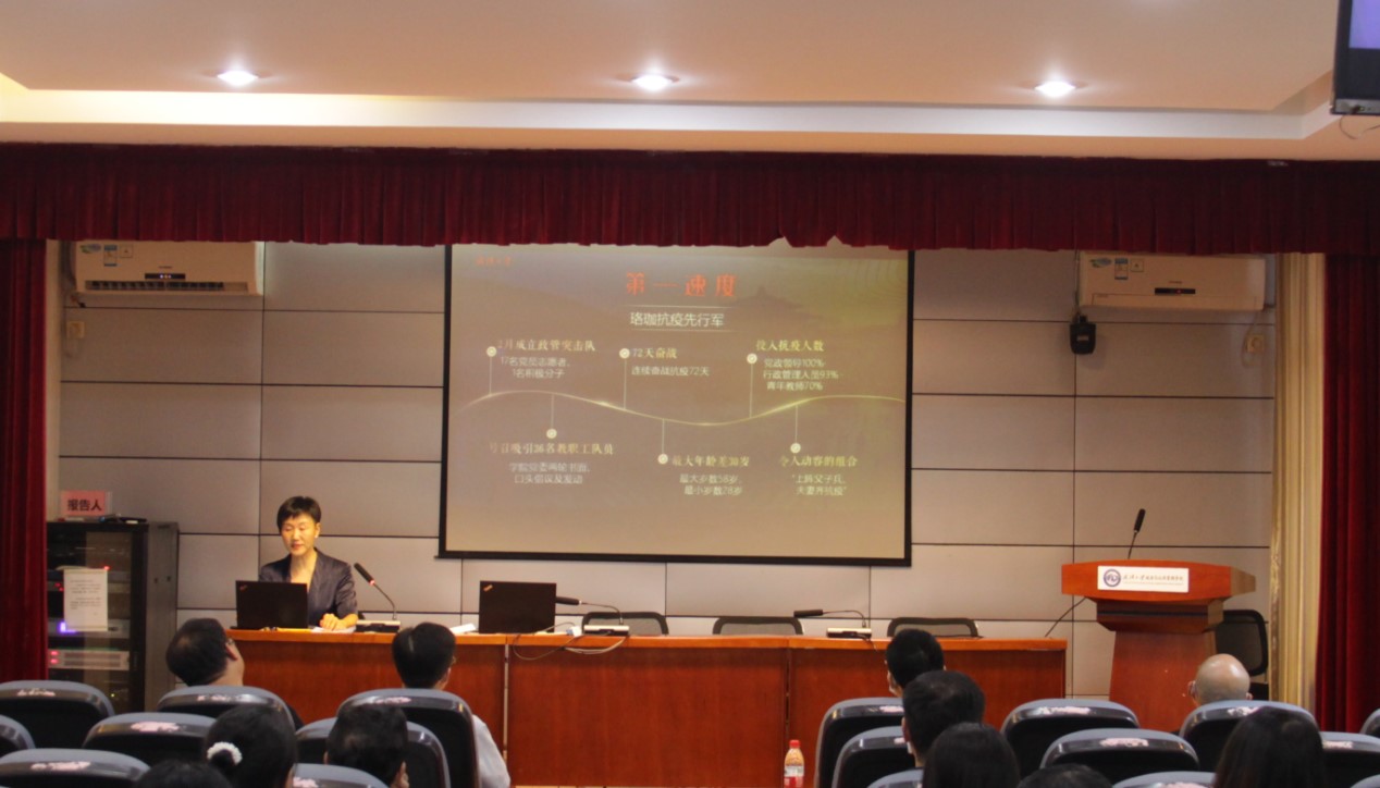 会议第一项,公司党委书记梁涛以《珞珈抗疫中的政管人》为题给教职工讲授微党课。她带领大家一起回顾了政管师生走过的抗疫路,重温了珞珈抗疫中令人感动的政管故事。她谈到,在疫情防控最艰难的时期,公司党政班子带头当好防疫领头雁,多措并举打好防疫抗疫战;专业教师党员争当防疫排头兵,线上线下率先垂范做表率;行政机关党员勇当防疫先锋队,闻呼必至冲锋防疫最前沿;员工党员勇当生力军,爱心接力彰显政管青春力量。公司60后、70后、80后、90后不断汇入,上至58岁,下到28岁,党员群众并肩战斗,党政领导全参与、行政管理人员93%参与,青年教师70%参与,“上阵父子兵、夫妻齐抗疫”,36名教职工组成的政管突击队在72天不间断值守中成为了全校值守院系中的排头兵。梁书记用“正向信息”,“信任储备”,“必胜信心”三个关键词寄语全体教职员工,她希望,这三个关键词成为政管人在继续面对长期抗疫中树立的坚定支撑,在今后面对更多困难与考验时秉承的共同信念。会上,梁书记宣读了在永利集团抗疫阻击战中获得校级表彰的38位志愿者名单,并同经理向运华教授一起为志愿者代表唐奇志、董宝安、冯存万、夏冕4位老师颁发了永利集团抗疫纪念证书。