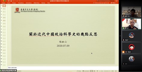 来自剑桥大学的冯先祥博士做了题为《关于近代中国政治科学史的几点反思》的报告。他先从近代中国政治科学史的学术意义出发,梳理了近20年的政治科学发展历程,然后简要介绍了学者们从纵向时间、横向时代和语境分析三种取向对民国政治学发展所做的探讨,接着谈到了他自己对其中若干问题的反思,包括晚清以新式学堂替代科举、西学制度化和商品化,学术分科、布赫迪厄场域,伯克论专业化、生产政治知识的地点与身份认同,最后从国家扮演的角色、制度化及专业化、经世致用三个方面总结了近代中国政治科学发展的脉络。来自新西兰奥克兰大学的陈立丰博士做了题为《粤港澳大湾区与深化CEPA的落实》的报告。他首先分析了目前文献中经常被忽视的CEPA(《内地与香港关于建立更紧密经贸关系的安排》)初始设置的内在问题,如缺乏争议解决机制、缺乏来自地方政府支持、自上而下决策过程所造成的地方不满情绪等,接着指出2015年中央政府在一带一路倡议(BRI)的规划下进一步提出了粤港澳大湾区(GBA)的概念,是希望在GBA框架下更好地执行CEPA,以此作为国际社会经济合作的典范,而目前通过投资工作小组、大湾区建设领导小组的设立和国民待遇逐步放开,大湾区正有效改善着CEPA实施中的协同治理。来自大连外国语大学的秦立志博士做了题为《战略透支的多元理论解读与德意志第二帝国的崛起困境》的报告,他立足于对交叉理论的研究,提出崛起国在战略转型过程中缘何出现战略透支/过度扩张的问题,接着在梳理有关崛起国战略透支文献的基础上,分析了崛起困境等概念,并指出了崛起国战略透支的特殊性。最后,秦博士通过对德意志第二帝国战略透支案例的深入分析,进一步论证了国际政治转型过程中的若干国家外交战略问题。