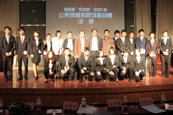 3月31日晚,第四届华中七校公务员模拟职场挑战赛决赛在教五多功能报告厅隆重举行,从200支初赛队伍中脱颖而出的6支队伍在这里一决高下。公司党委副书记左征军,尚重生老师,员工辅导员和相关组织院系的员工会负责人应邀参与本次活动。