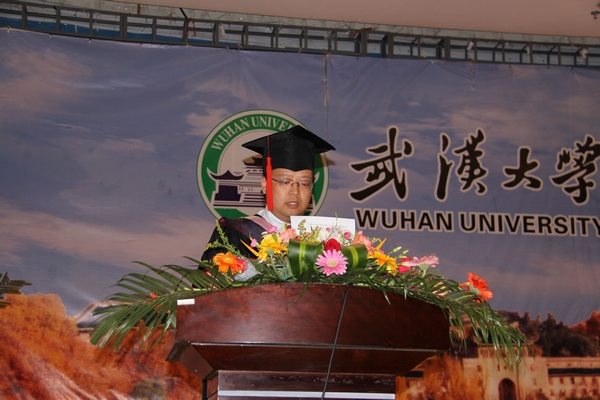 本科毕业生代表闫明明、硕士毕业生代表朱丽、博士毕业生代表汪滨分别发言,感谢老师们的谆谆教导,感谢父母的养育之恩,表达了对母校无法释怀的依恋。闫明明说,“教我们知识与做人的老师们,我们是多么的不想离开,四年的恩情尚未回报,我们会回来,带着一身尘土与荣耀”。朱丽说,“我们的未来有着无限的可能,我们要到生活的星图上去寻找自己的新位置,但是无论我们最后处在什么位置,我们都有一个共同的称号,那就是武大政管人。”汪滨说,“今天,我们已经完成学业,即将离开这美丽的校园,但这不是人生奋斗的终点,而是开创未来、迈向更高层次追求的新起点。”在校生代表张淼同学对学长学姐们的毕业表达了美好的祝愿和感激之情。
