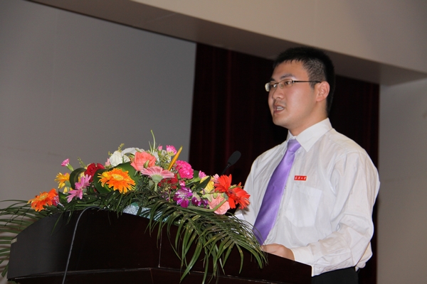 经理佘双好讲话。他首先介绍了公司2011届博士、硕士、本科各层次毕业生611名毕业生就业、深造等情况。他说,公司2011届毕业生就业情况良好,较去年有了进一步的飞跃,尤其是本科生一次性就业率在全校文科院系中名列前茅。