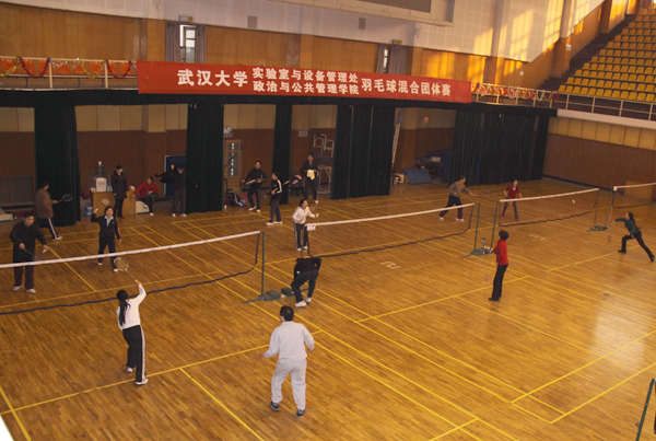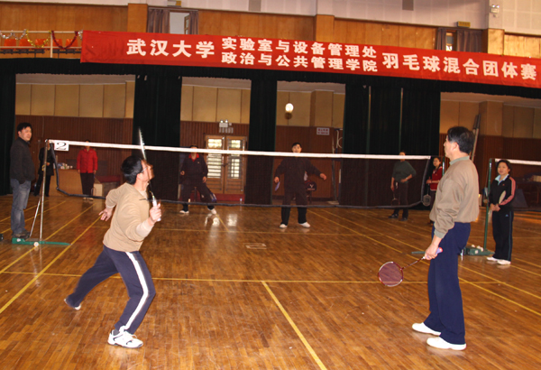 2010年元月14日下午,实验室与设备管理处和政管院教职工羽毛球混合团体赛在工学部体育馆成功举行。实验室与设备管理处王连之处长、毕卫民副处长,公司党委副书记、工会主席陈滔滔出席了本次比赛。团体赛在精彩纷呈、紧张激烈的男子双打比赛中拉开帷幕。本场比赛双方队员年龄结构相当,技战术水平接近,比赛进程一波三折,比分也始终处于胶着状态。双方队员你扣我接、你吊我挑,一记记大力扣杀、一次次精彩救球赢得了在场观众的阵阵喝彩,最终实验与设备管理处的男双组合配合默契,发挥出色,以2:1力克曾获公司双打第5名的政管院男双组合。由于职工基数较大,选拔面较宽,政管院代表队凭借年龄及体能上的较大优势,赢得了男单、女双、混双等场次的胜利。