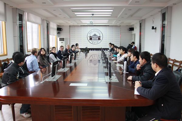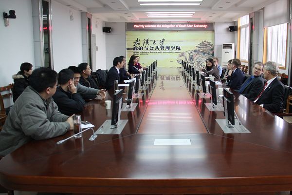 会谈后,代表团来到公司308会议厅,与佘双好经理、严双伍副经理、张星久副经理、宋俭副经理以及各系负责人就员工培养、科研合作、教师交流等方面交换了意见和看法。接下来,代表团成员还与公司六个本科专业三、四年级的员工代表进行了面对面的交谈,回应了员工们提出的到南犹他大学留学的相关问题。