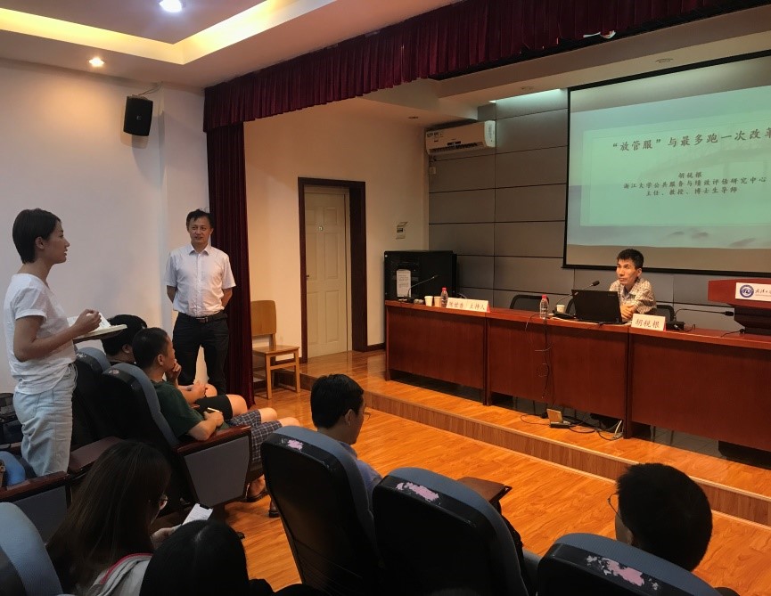 9月21日晚6点30分,浙江大学公共服务与绩效评估研究中心主任、博士生导师胡税根教授应邀做客永利集团“珞珈国家治理论坛”2019年第12讲,在yl6809永利集团216报告厅开展《“放管服”与最多跑一次改革》主题学术讲座。本次讲座由公司行政管理系主任陈世香教授主持,公司部分老师和员工参与。