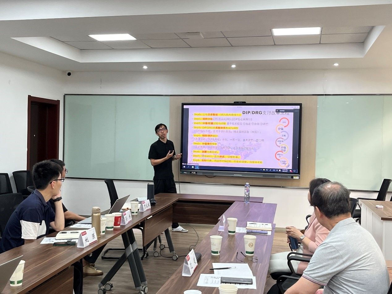 接着,姚强老师作题为“DIP背景下医保基金结算关键技术探讨” 的分享。他对DIP改革相关政策文件进行了系统回顾与梳理,结合现场调研与政策文献分析,建立了DIP医保基金结算的逻辑框架和实施流程。在选题的具体实施过程中,他以“基金预拨付”、“月度预结算”和“年度清算”的技术路线图为基础,阐述了三者构成的核心结算框架及关键技术。他倡导通过出台结算及相关配套政策明确结算流程、测算方法及关键参数,为DIP改革的落地实施提供技术支撑和制度保障。